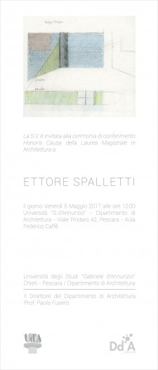 Cerimonia di conferimento Honoris Causa della Laurea Magistrale in Architettura a ETTORE SPALLETTI - Venerdì 5 Maggio 2017 ore 12:00 Aula Federico Caffè