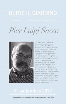 Conferenza di Pier Luigi Sacco "Cultura 3.0. Sviluppo a base culturale e inclusività" 1 settembre 2017 - ore 18:00 - aula rossa Polo Pindaro
