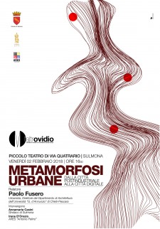 Paolo Fusero, urbanista e Direttore del Dipartimento di Architettura dell’Università “G. d’Annunzio” di Chieti e Pescara terrà a Sulmona venerdì 2 febbraio alle ore 16:00 presso il Piccolo Teatro di via Quatrario la conferenza Metamorfosi urbane. Dalla città postindustriale alla città digitale alla presenza del Sindaco di Sulmona Annamaria Casini.