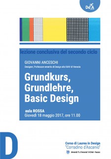 Lezione conclusiva del secondo ciclo CdL Design, GIOVANNI ANCESCHI, Grundkurs, Grundlehre, Basic Design - aula ROSSA Giovedì 18 maggio 2017, ore 11.00